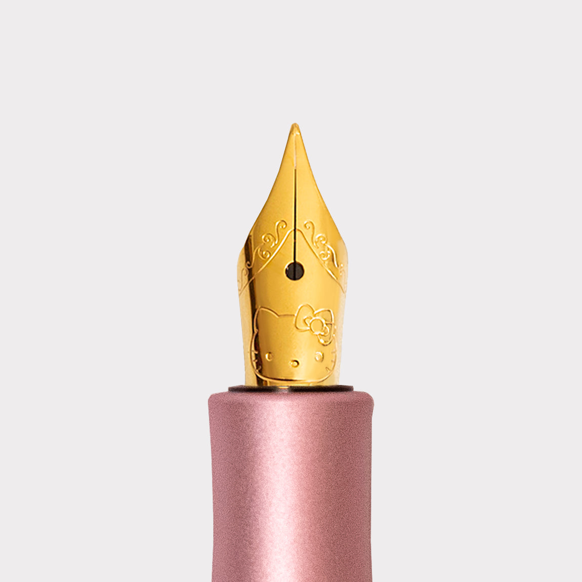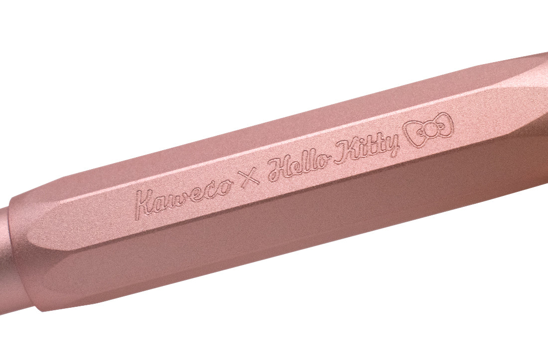 筆蓋上的"Kaweco x Hello Kitty"運用深層鐳射雕刻技術,接著施以陽極處理,使得品牌字樣巧妙地呈現。最後經過噴砂工藝,整個筆身產生獨特的霧面金屬質感。