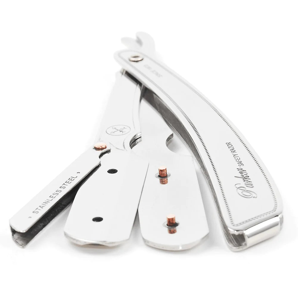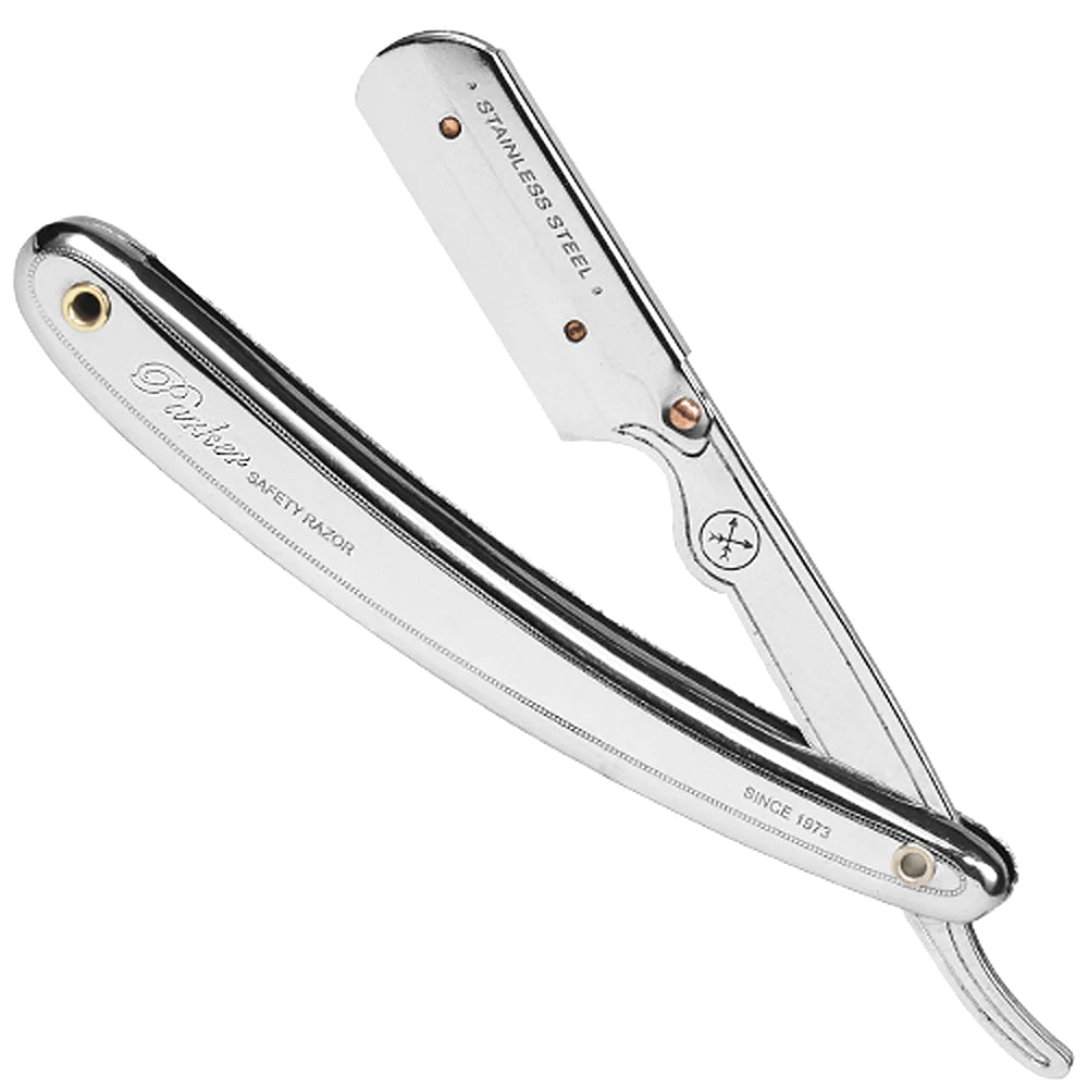與一般直剃刀不同的是,此款產品開式刀夾輕鬆替換刀片,裝置穩固,不論是單刃或雙刀刃折半都能妥貼搭配使用。