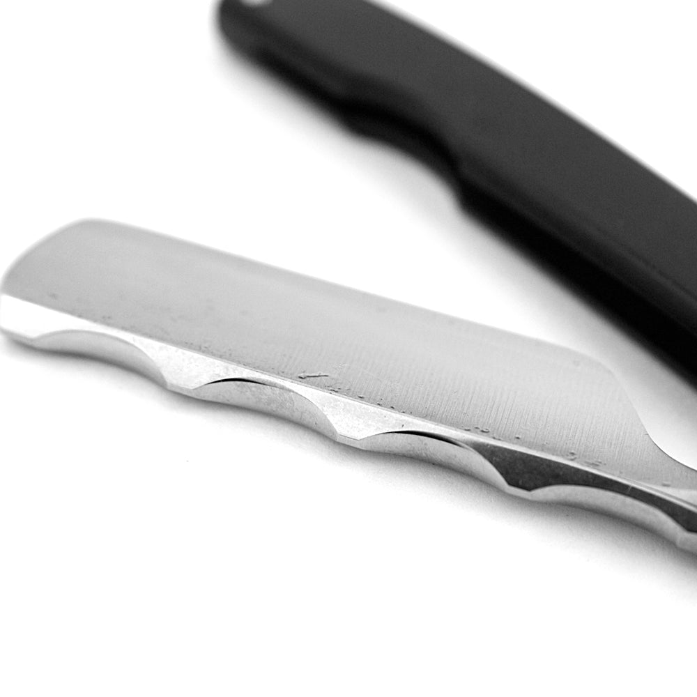 這款造型獨特剃刀採用6/8吋瑞典含碳鋼材質,刀尖圓頭,全凹磨打造,可服貼您的臉部輪廓,並在尾端有一個拇指凹槽,以提高握力和舒適度。獨特的握柄由有烏木製成,堅硬防水,刀面刻上Dovo字樣,刀脊『流動』曲線條設計極其華麗。