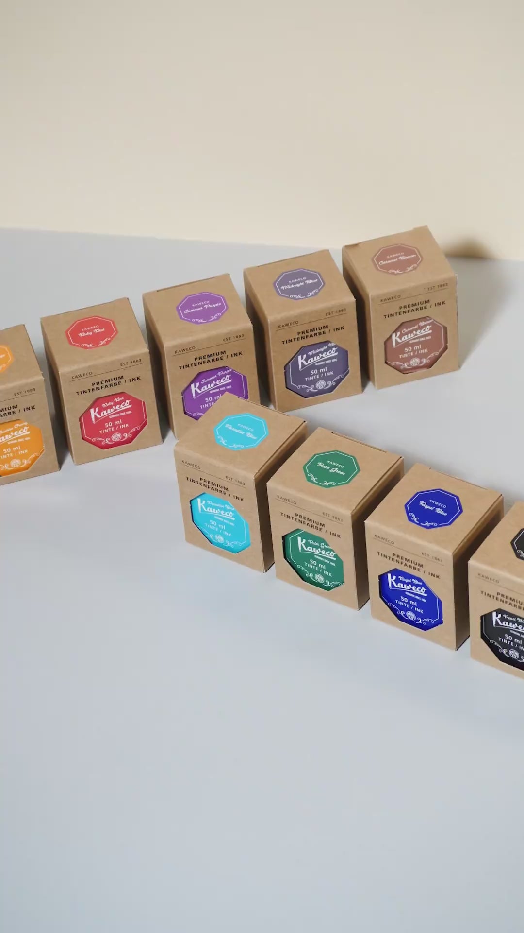 墨水共有17種不同的顏色。每個罐子都標有Kaweco認證標誌,以確保您購買原裝Kaweco油墨。