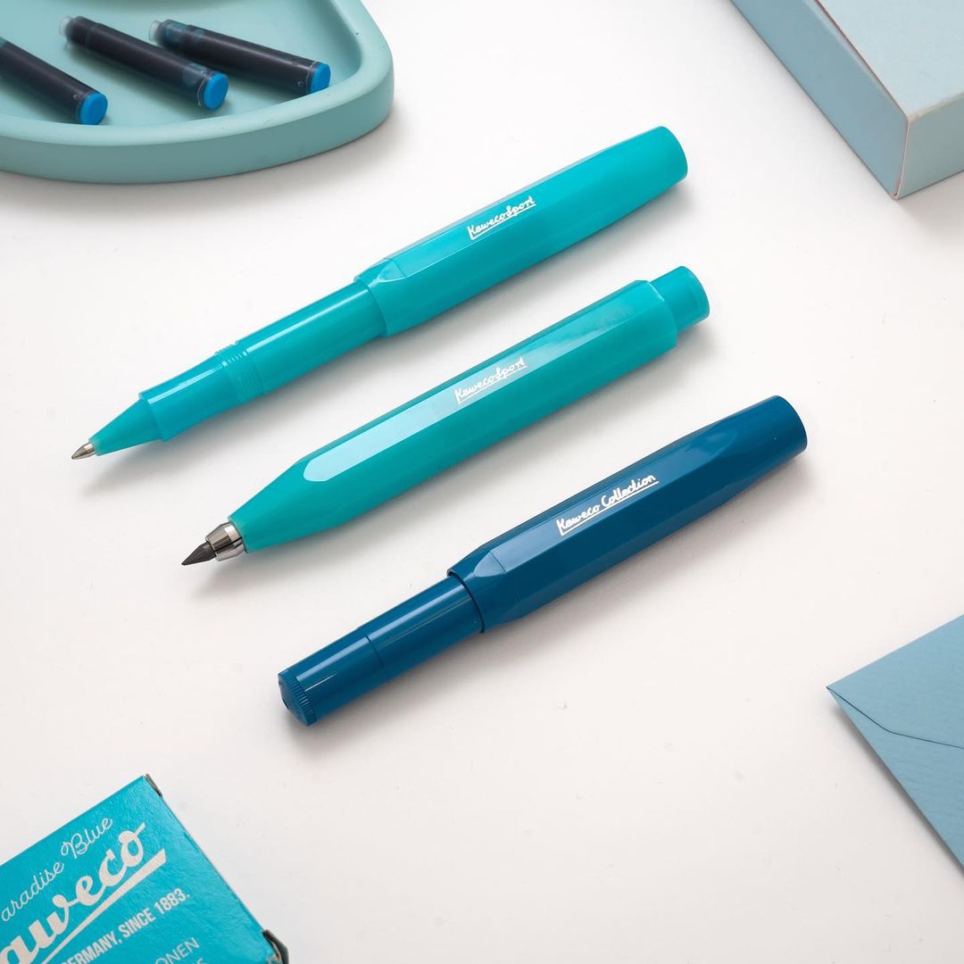 Kaweco將現代材料和現代色彩與其經典設計傳統相結合,打造出清新,有趣,時尚的全新Sport系列。 Kaweco磨砂運動系列因其柔和的淺色和略微不透明的半透明色塑料而脫穎而出,可以一窺筆的內部工作原理。Kaweco Frosted Sport是夏季的必備單品,這個新系列的名字聽起來很可愛具有銀色調,淺色和新鮮水果的名字。