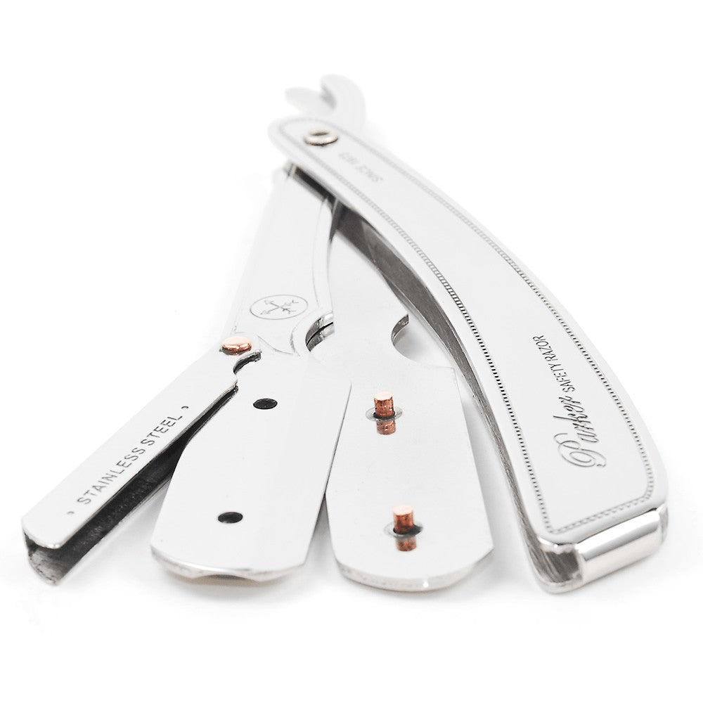 不鏽鋼握把手感紮實,弧度好掌握。與一般直剃刀不同的是,此款產品開式刀夾輕鬆替換刀片,裝置穩固,不論是單刃或雙刀刃折半都能妥貼搭配使用。剛開始用雙刀刃安全剃刀試水溫的使用者,可利用這款刀具體驗雙刀刃無法帶來的不同角度感受。無論是老手或是新手,都非常好掌握上手,體驗舒適乾淨刮鬍手感。