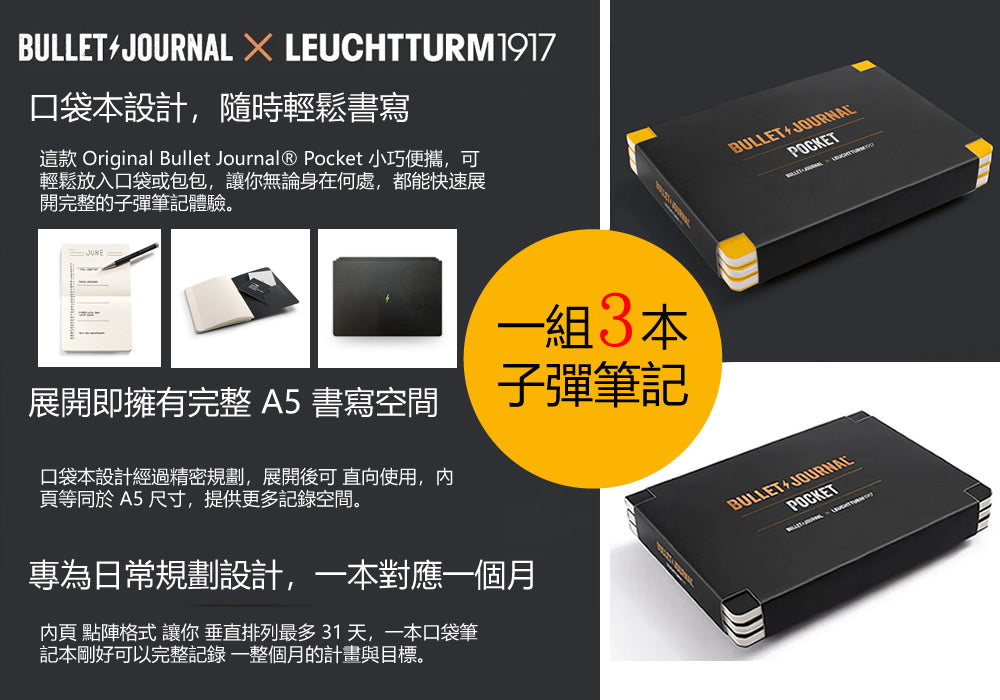 來自德國的經典筆記本品牌 LEUCHTTURM1917,攜手 Bullet Journal 創始人 Ryder Carroll,打造專為行動生活設計的 Pocket Bullet Journal。輕巧便攜,功能完整,讓你隨時隨地掌握生活節奏。。